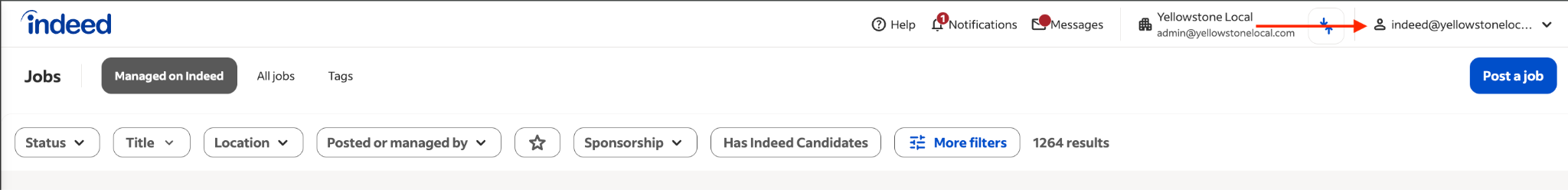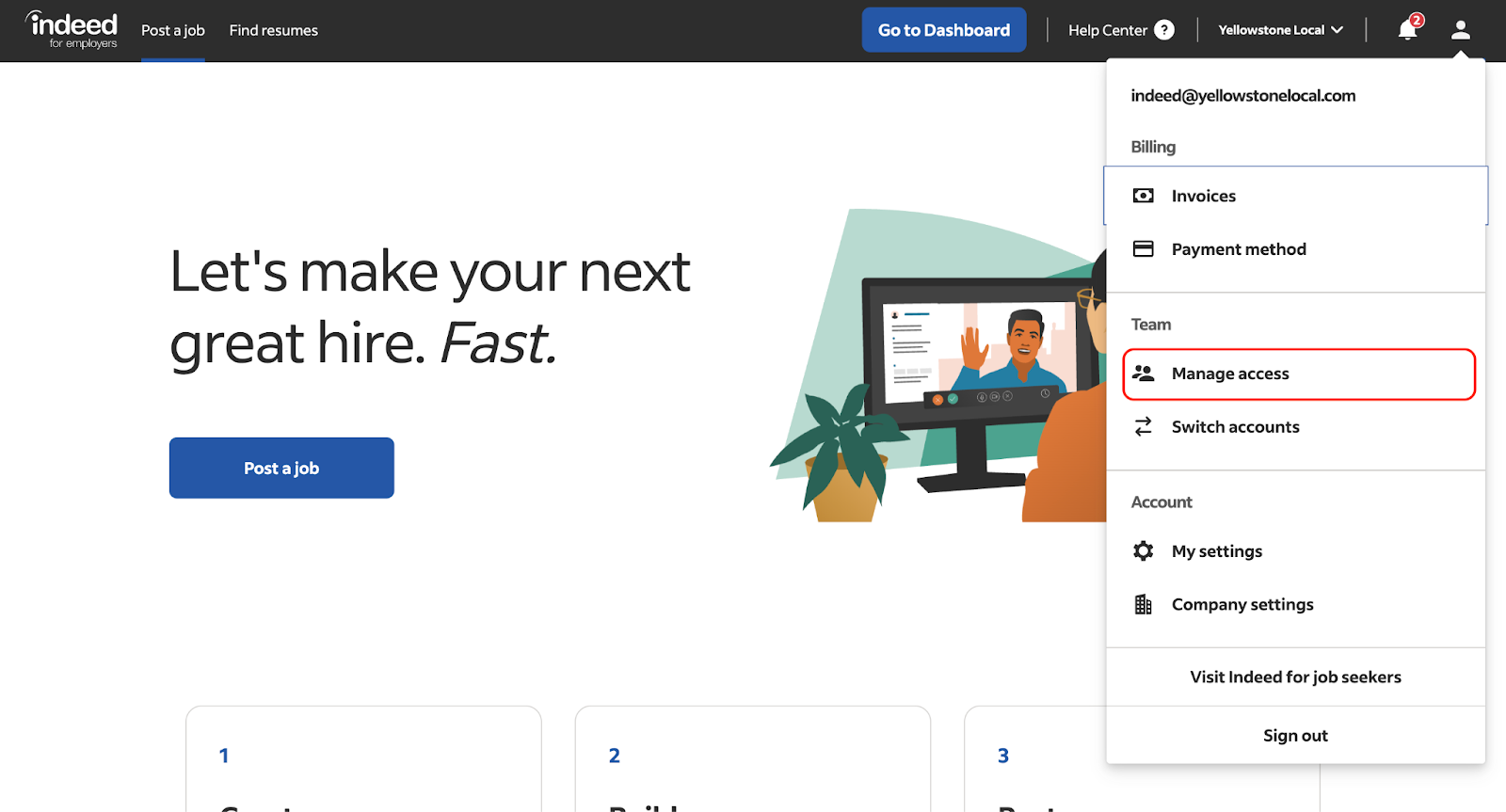 - This outlines the procedure for granting admin access to indeed@yellowstonelocal.com.